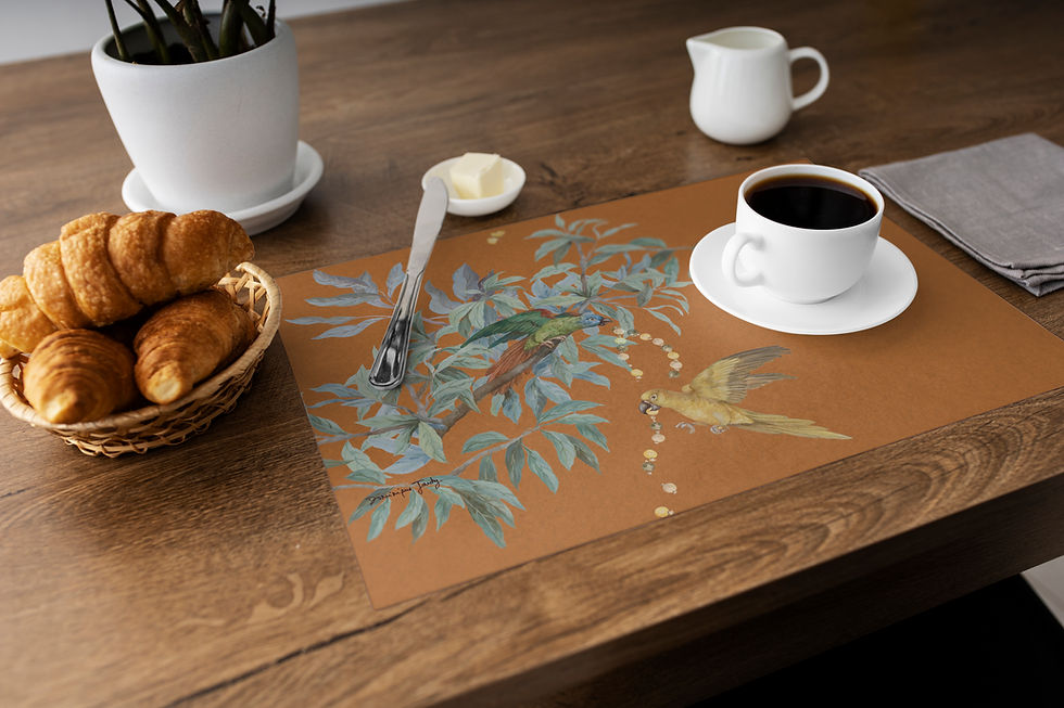 Todos os jogos americanos de jantar têm 27 cm por 38 cm. Eles são impressos, com base de madeira MDF, protegidos com vinil e têm um acabamento de cortiça estiloso por baixo. Eles são muito resistentes e podem ser lavados. Cada série tem várias imagens para escolher para montar seu conjunto e decorar sua mesa. Escolha a que combina com sua louça ou seu ambiente!